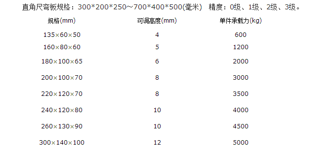 直角尺彎板規格:300*200*250~700*400*500(毫米) 精度:0級、1級、2級、3級。